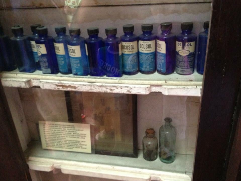 During the revolution, Gen. Aguinaldo suffered from appendicitis and cataract. His appendix was preserved in the transparent bottle below together with the gauze, while the blue bottles were used for the treatment of his cataract. According to the tourist guide, Gen. Aguinaldo was also a victim of medical malpractice during his time.