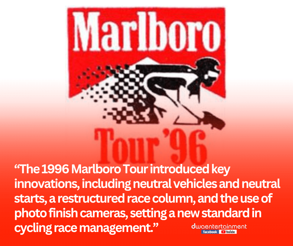 The 1996 Marlboro Tour revolutionized Philippine cycling with groundbreaking innovations, including the introduction of neutral vehicles and neutral starts, a restructured race column, and the use of photo finish cameras. These advancements set a new standard in race management, elevating the professionalism and excitement of the sport in the country.