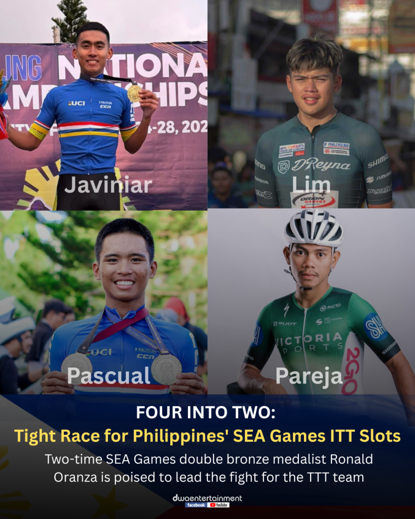 Meanwhile , the four participants of the Team Time Trial (TTT) will be selected from the pool of five riders, Javiniar, Lim, Pareja, Pascual and two-time SEA Games double bronze medalist, Ronald Oranza.