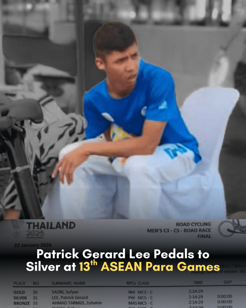 Huge congratulations to Patrick Gerard Lee for contributing yet another medal for the country by securing a Silver Medal in the 78-km C3-C5 Road Race at the 2025 ASEAN Para Games in Thailand.